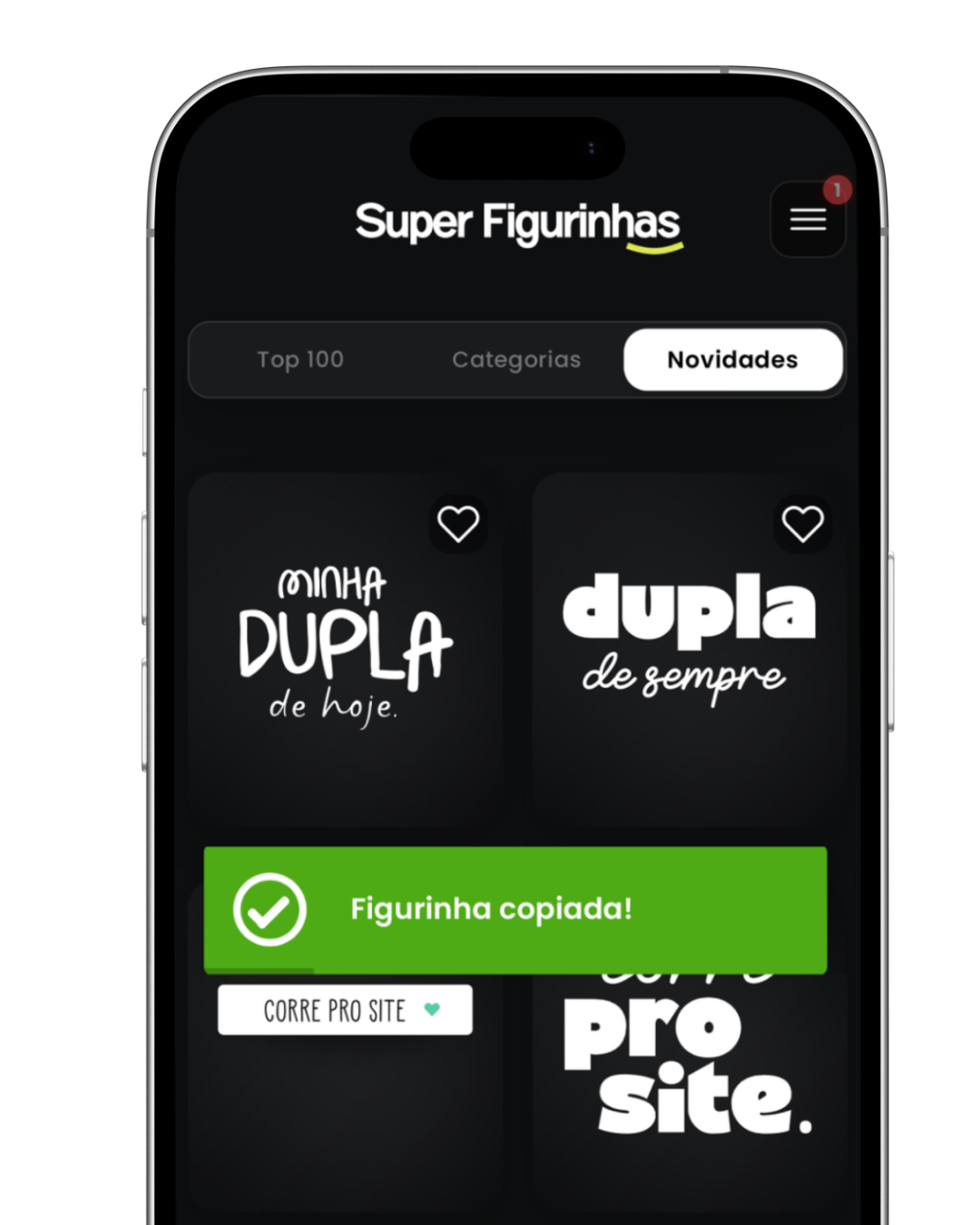 Basta clicar sobre a figurinha desejada e ela será automaticamente copiada para a área de transferência do seu dispositivo, pronta para ser colada diretamente no seu story. Não é necessário baixar a figurinha no celular.